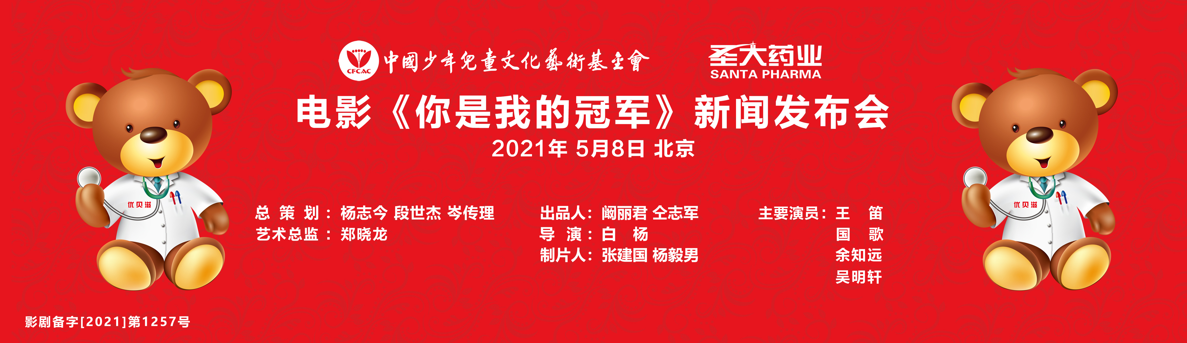 由中國少年兒童文化藝術(shù)基金會(huì )和圣大(張家口)藥業(yè)有限公司共同出品的冰雪題材少年勵志電影《你是我的冠軍》新聞發(fā)布會(huì )5月8日在北京飯店金色大廳隆重舉行。
